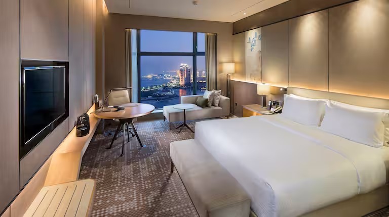 푸젠성 샤먼(하문)시 해창구 중심부에 위치한 4.5성급 고급 호텔로, 힐튼 그룹이 운영하며 2017년에 개장하였습니다. 총 301개의 세련된 객실은 대부분 바다 또는 호수 전망을 제공하며, 스마트 시스템과 고급 어메니티를 갖추고 있어 쾌적한 투숙 환경을 자랑합니다. 호텔 내에는 중식당, 올데이 다이닝 레스토랑, 라운지 바 등이 마련되어 있어 다양한 식사를 즐길 수 있으며, 실내 온수 수영장, 피트니스 센터, 사우나 등 부대시설도 충실합니다. 특히 최대 1,000㎡ 규모의 연회장과 6개의 회의실은 비즈니스 및 행사에도 최적화되어 있습니다. 하문 가오치 국제공항에서 차량으로 약 25분 거리에 있어 접근성이 뛰어나며, 인근에는 해창공원, 대형 쇼핑몰 등 편의시설이 잘 조성되어 있습니다.