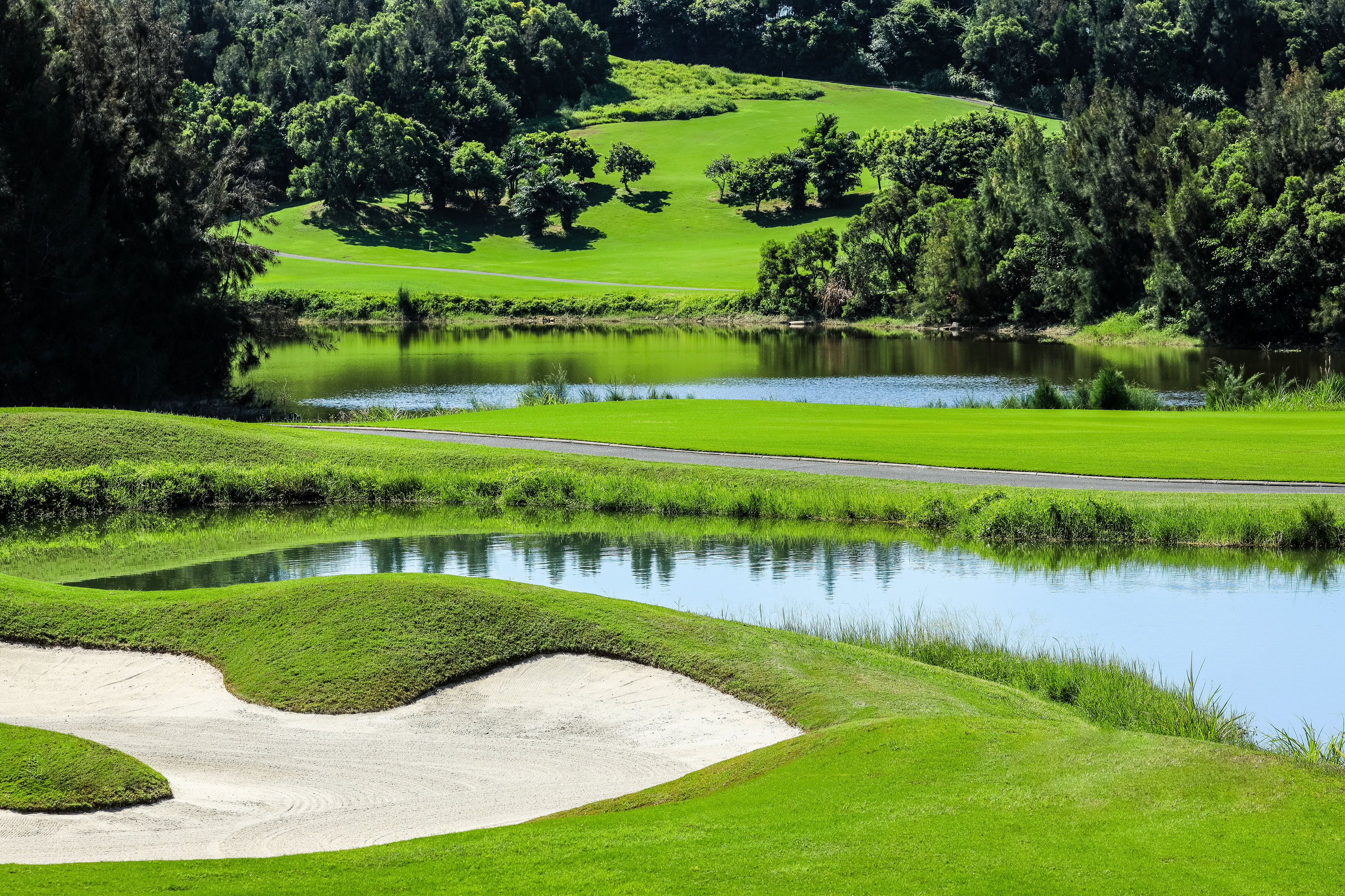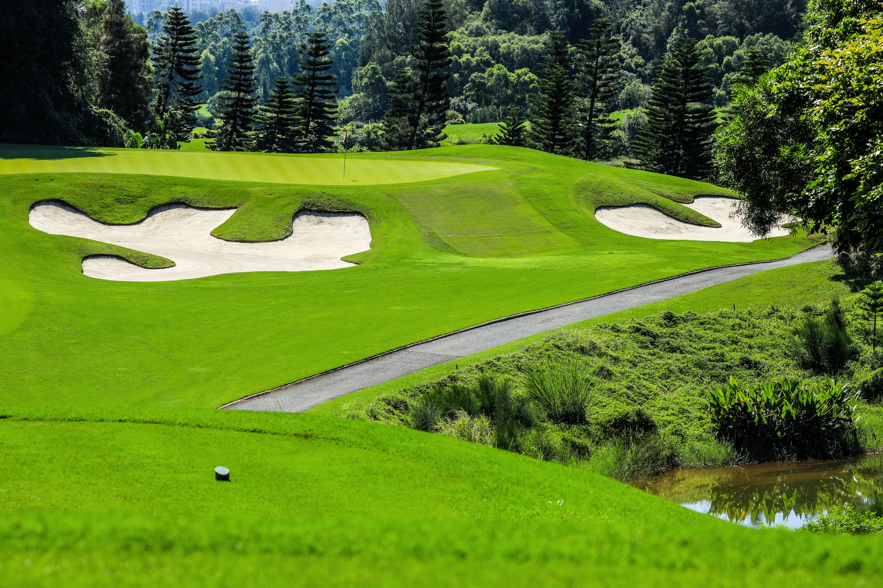 중국 푸젠성 푸톈시 산팅 개발구, 메이저우만 북안의 스포츠 파크 내에 위치한 리조트형 골프장으로, 2012년 공식 개장했습니다. 설계는 호주의 Contour Golf Design(담당자 Bob Shea 및 Ben David)이 맡았으며, 해안과 산악, 폐채석장, 계단식 계곡 등 다양한 자연 형상을 활용한 탁월한 구성을 보여 줍니다. 27홀(18홀 운영)로 구성되며, 표준 파 72, 연장 7,302야드의 챔피언쉽급 코스로 설계되어 뛰어난 난이도와 풍경미를 갖춥니다. 실제로 중국 내 가장 도전적인 코스 중 하나로 평가되었고, 2016년 PGA 차이나 투어 ‘푸톈 오픈’ 개최지로 선정되었습니다. 리조트는 잘 관리된 드라이빙 레인지, 퍼팅 그린, 고급 클럽하우스를 갖추고 있어 골퍼에게 정교한 플레이와 휴식을 동시에 제공합니다. 자연 친화적이고 풍경미가 뛰어나며, 전략적인 플레이를 즐기려는 골퍼와 함께 아름다운 환경을 찾는 여행객 모두에게 추천할 만한 명소입니다.